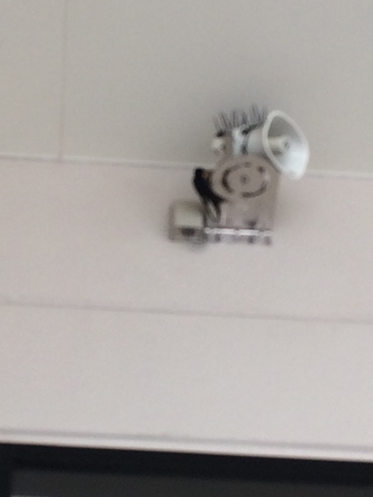 本店入り口右横のスピーカーの部分にツバメが巣をつくりました!