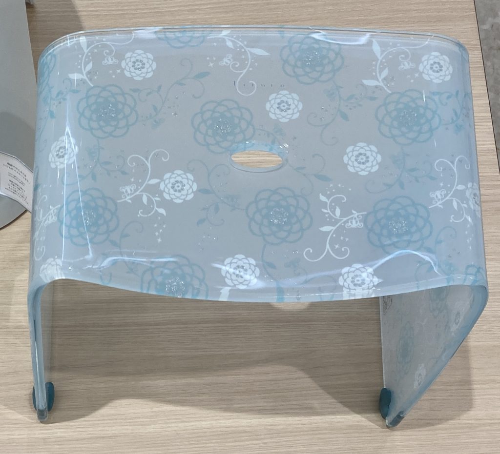 プリンセスをイメージした花びらを重ねた花柄がモチーフのブルーのバスチェア