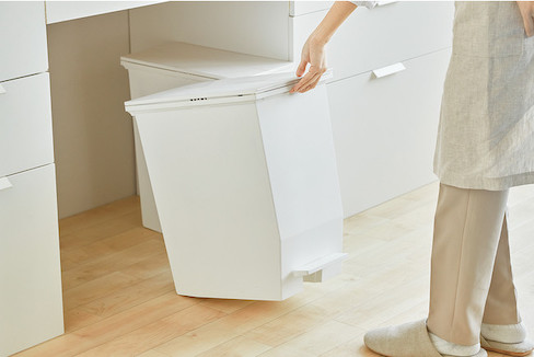 左右両開きのフタで、カウンター下から取り出さずにゴミが捨てられます。