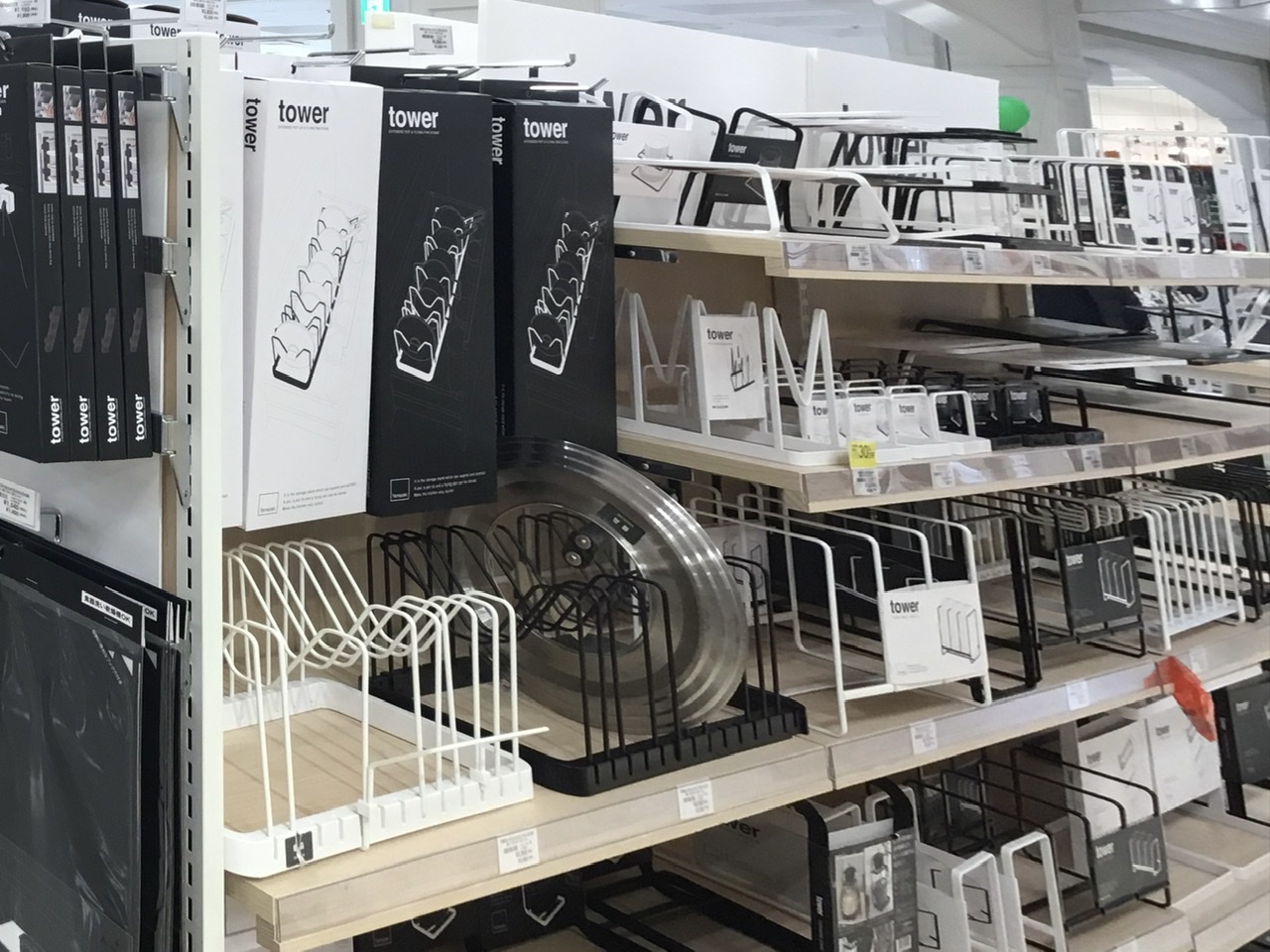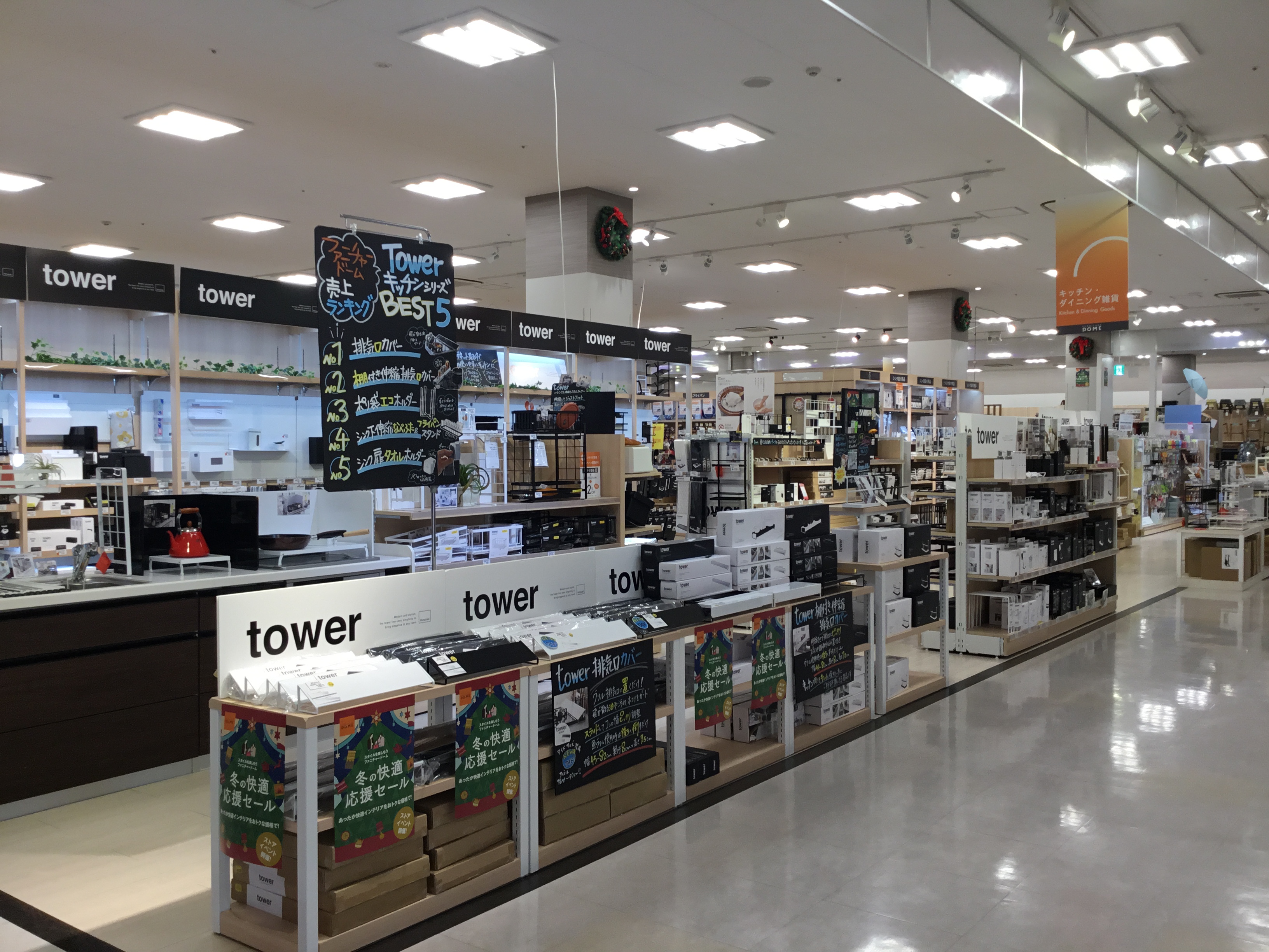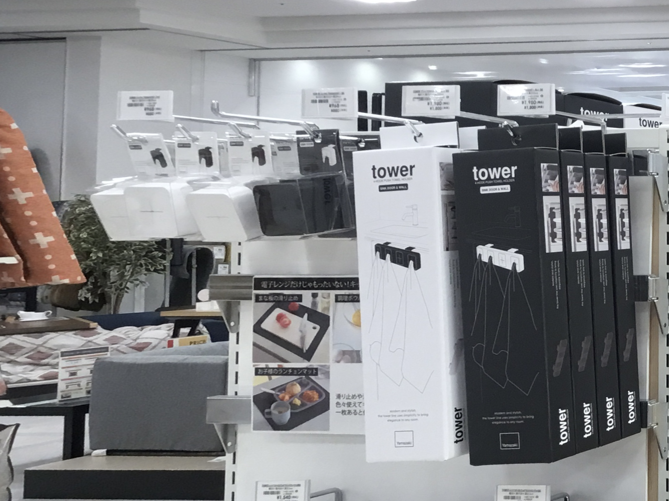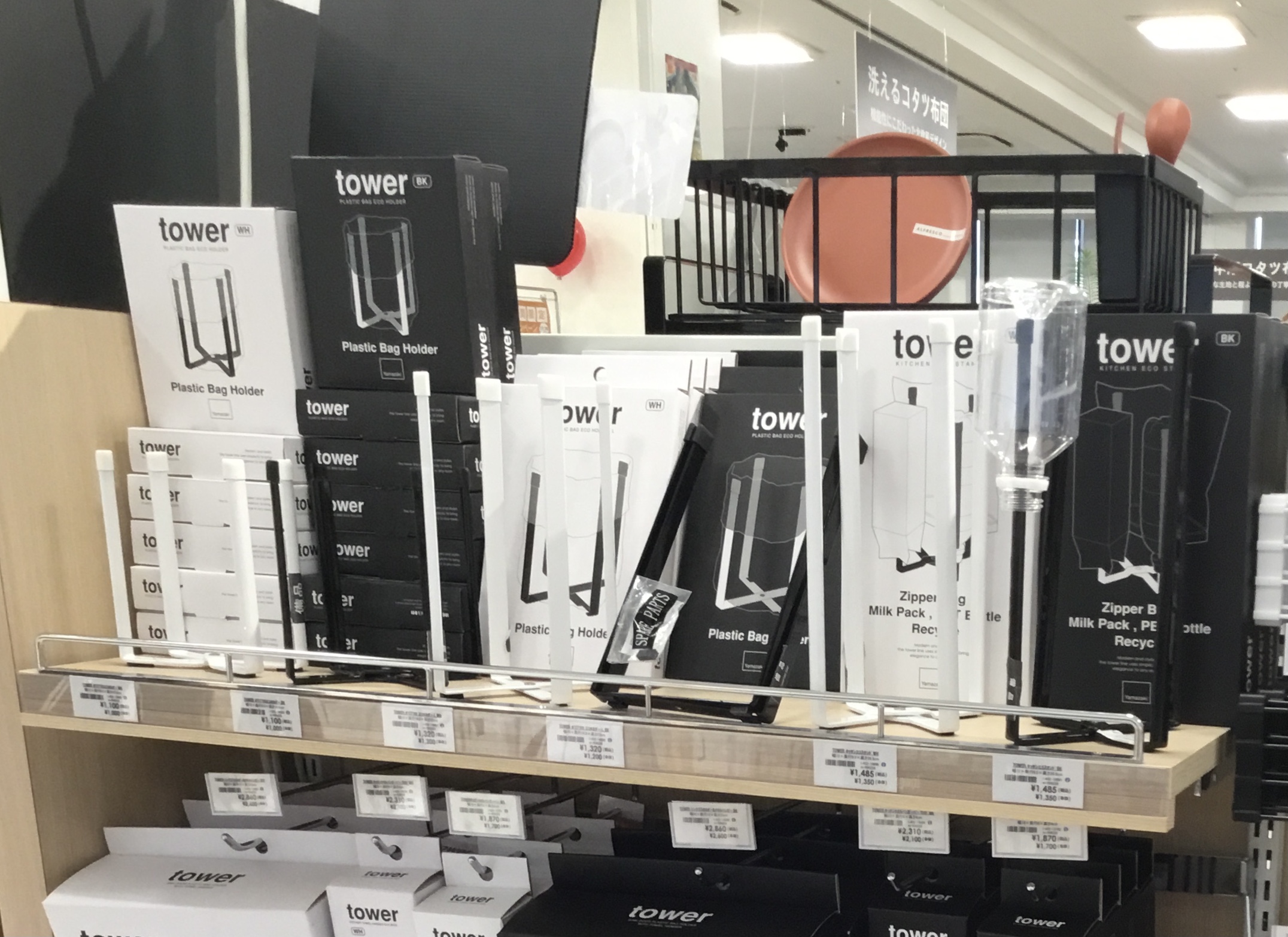 山崎実業の「tower」シリーズの紹介です。ファニチャードーム本店は「tower」シリーズを実際にご覧いただけます。カタログ掲載品の3分の2のものが売場に展示されていて、「tower」展開実店舗としては日本一です。