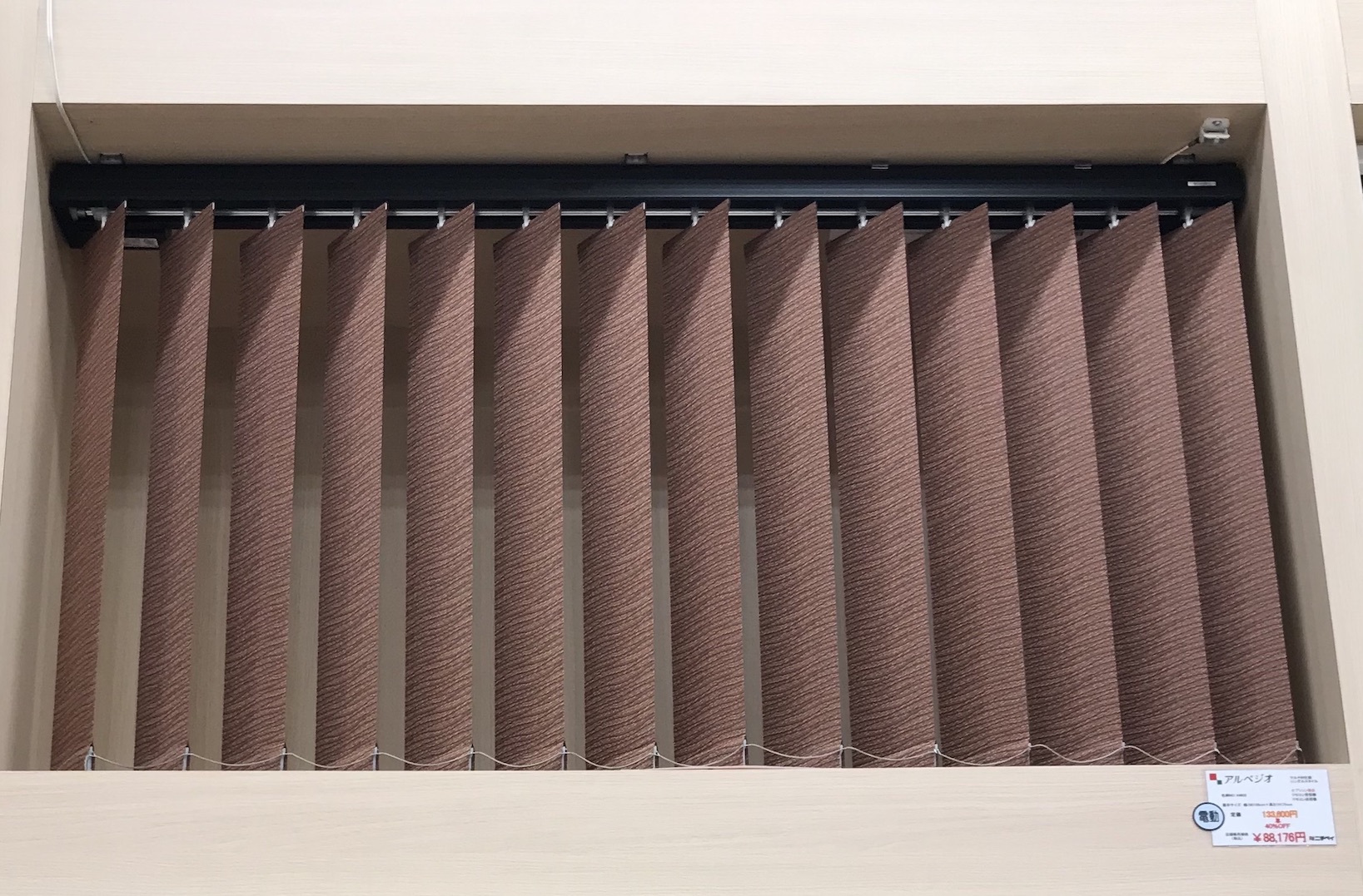 店頭にはバーチカルブラインドとロールスクリーンの展示しております。
