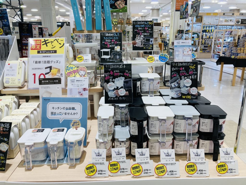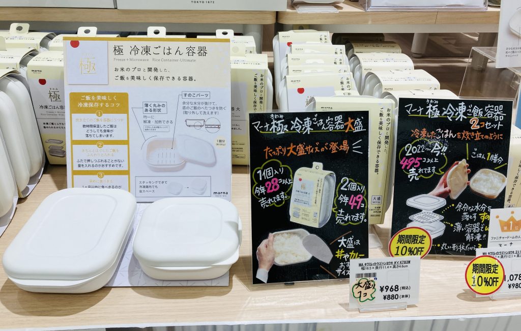 店頭大人気はマーナシリーズの調味料ポット&冷凍ご飯容器