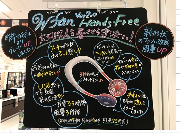 本日は、人気の首にかける扇風機「W FAN(ダブルファン)」ご紹介します。