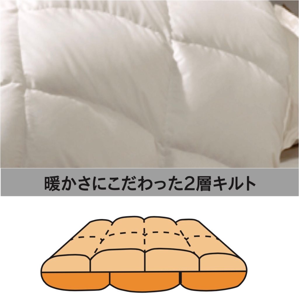 保温性が高い交互2層キルトタイプ