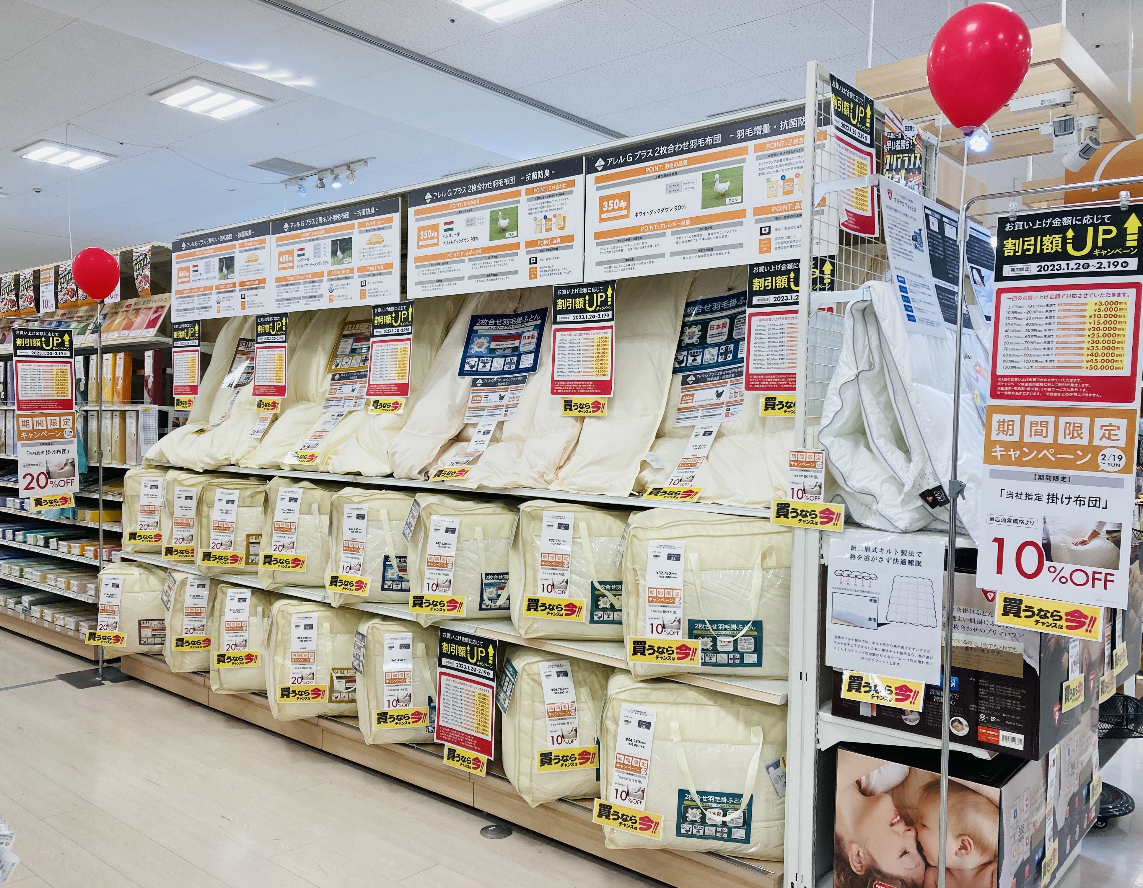 本日は寝装品コーナーよりお得な羽毛掛け布団ご紹介します。