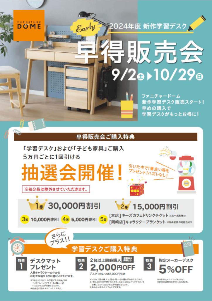 10月29日(日)まで、新作学習デスク「早得販売会」も開催しております。
