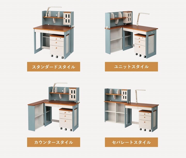 自由に組み替えて楽しめる学習デスク「シェリー」をご紹介します。
