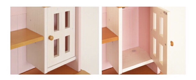お片付けが楽しくなる小窓のついた収納扉が可愛さを引き立てます。