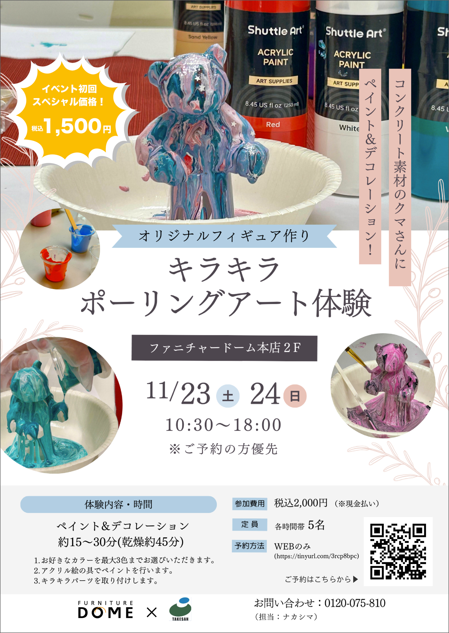 名古屋ファニチャードーム本店にて 11月23日(土)24日(日)の2日間、ポーリングアート体験を行います!