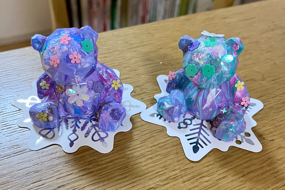 最後にラメを振りかけて、キラキラ輝くクマちゃんの完成です!