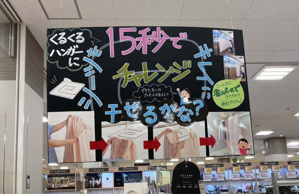 シーツを15秒以内に干せたらプレゼントがありますよー