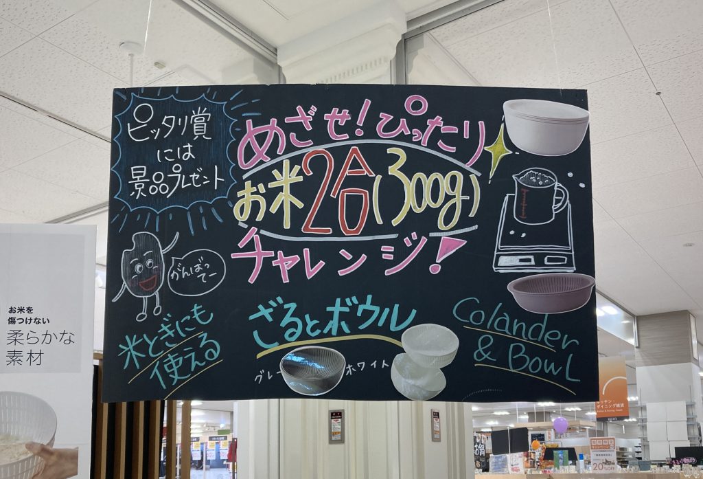 おこめ2合をぴったり計れた方にはプレゼントがありますよー