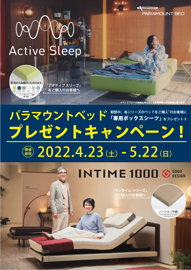 パラマウントベッドの対象シリーズをご購入で「専用ボックスシーツ」プレゼントキャンペーンもございます!