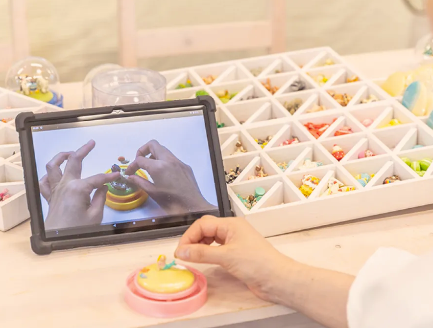 選び終わったら、タブレット動画を見ながらスノードームづくりスタート!小さなお子様が参加される際にはスタッフが補助させていただきます。お気軽にご参加ください ✨