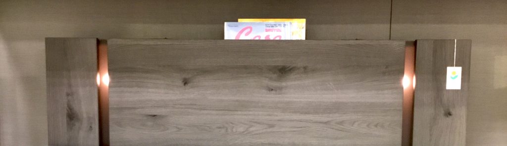 照明と照明のスイッチ付コンセント(ダブルサイズ以上は左右で2箇所)、雑誌入れがあるヘッドボードのフレーム。⬇︎