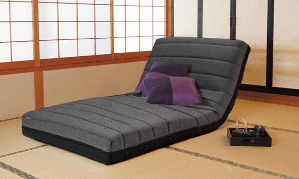 次に、1つ目の画像の右(奥)はリクライニング機能が内蔵されたマットレスで、今お使いのベッドがリクライニングベッドに変身し、和室でも気楽に使えて、ソファや座椅子感覚でテレビを見たり本を読んだりできます。