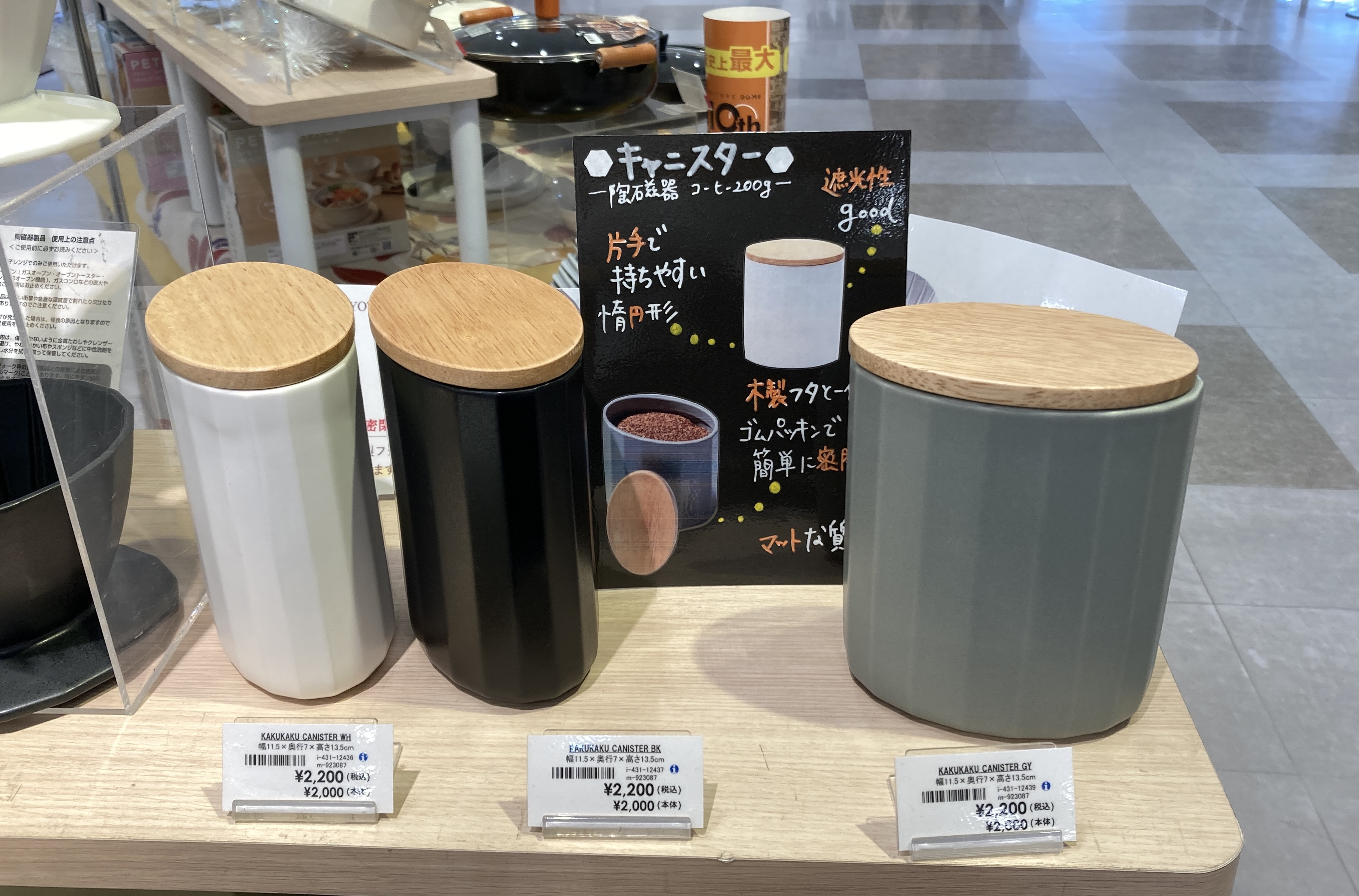 楕円形のデザインは片手でも持ちやすく酸化や湿気を防ぐ『キャニスター』