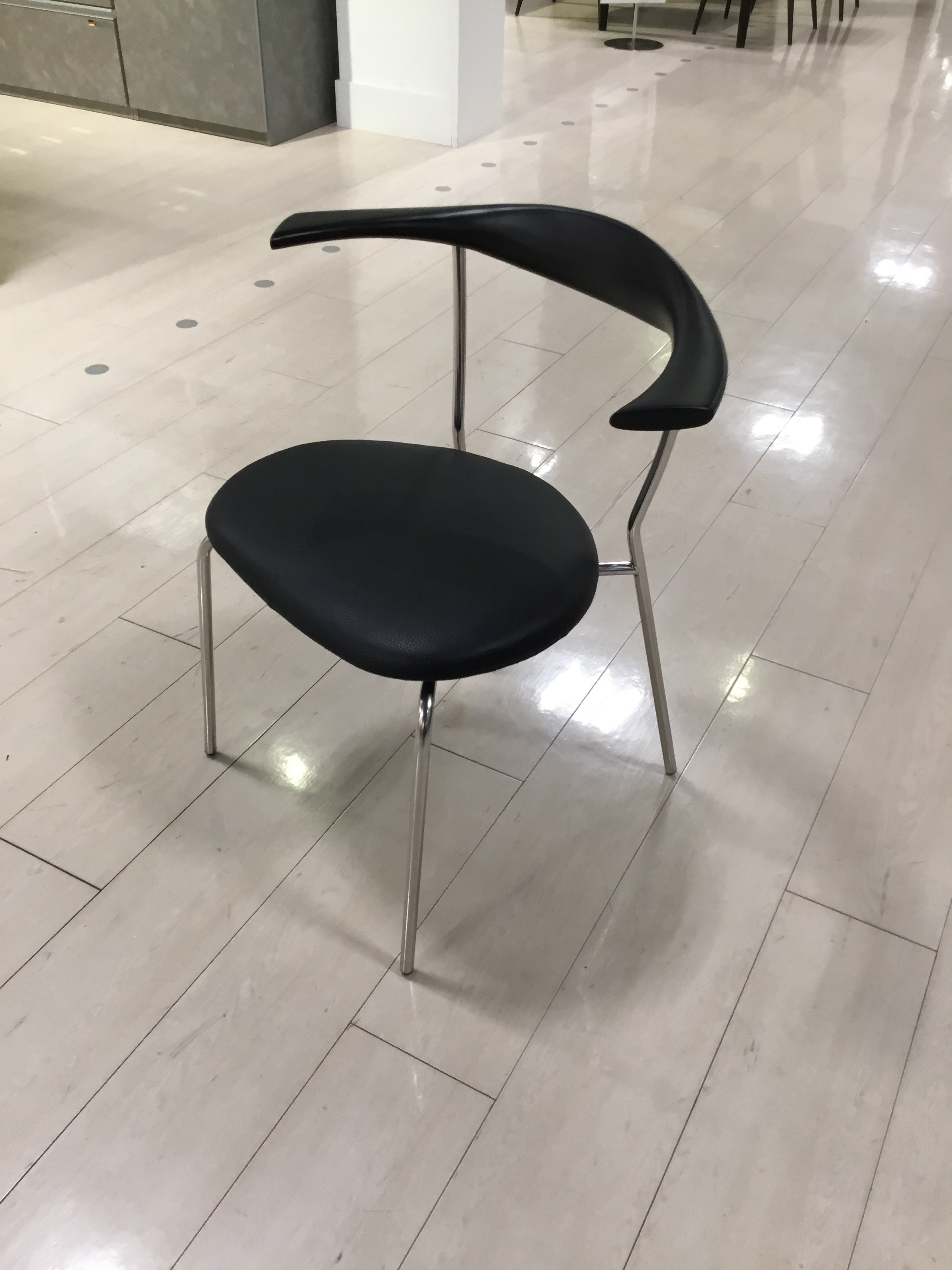 特徴的な脚は、スッキリしたデザインで、テーブルへの出入りもしやすい実用的なデザインです。