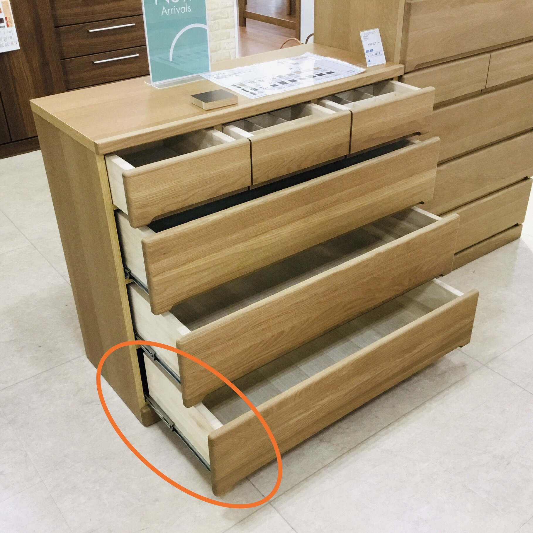 引出しの画像をみてお気付きかもしれませんが、側面の板の厚みが厚いんです!2.5cm!