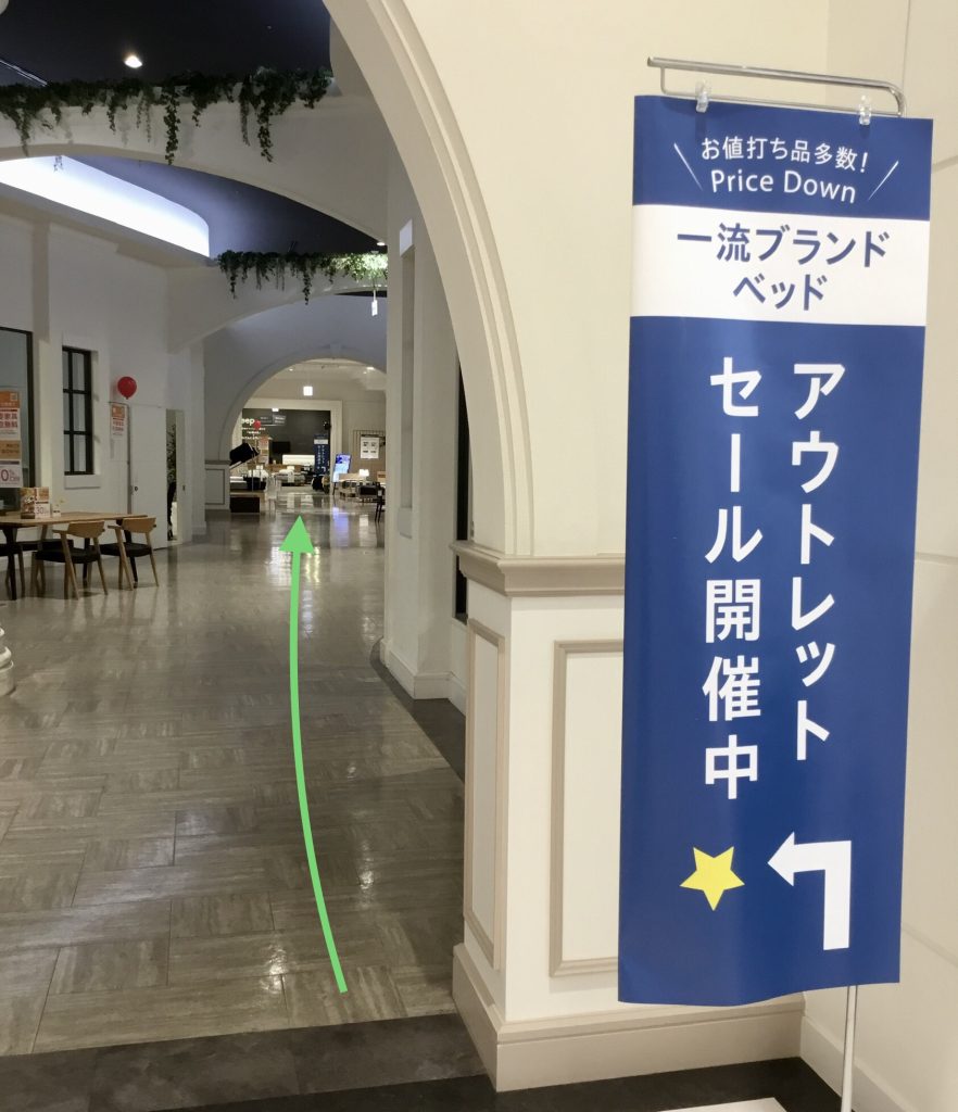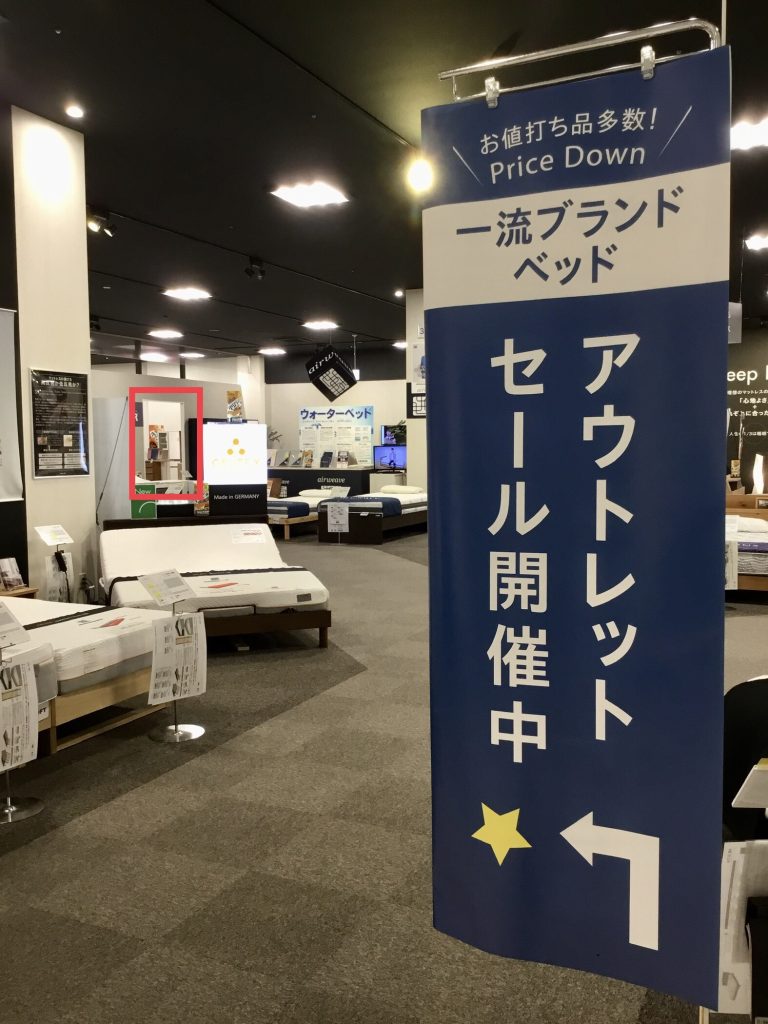 他のアウトレットのベッドは、中央エスカレーターを2階に上がって、通路を奥に進み、一番奥の売場にございます。