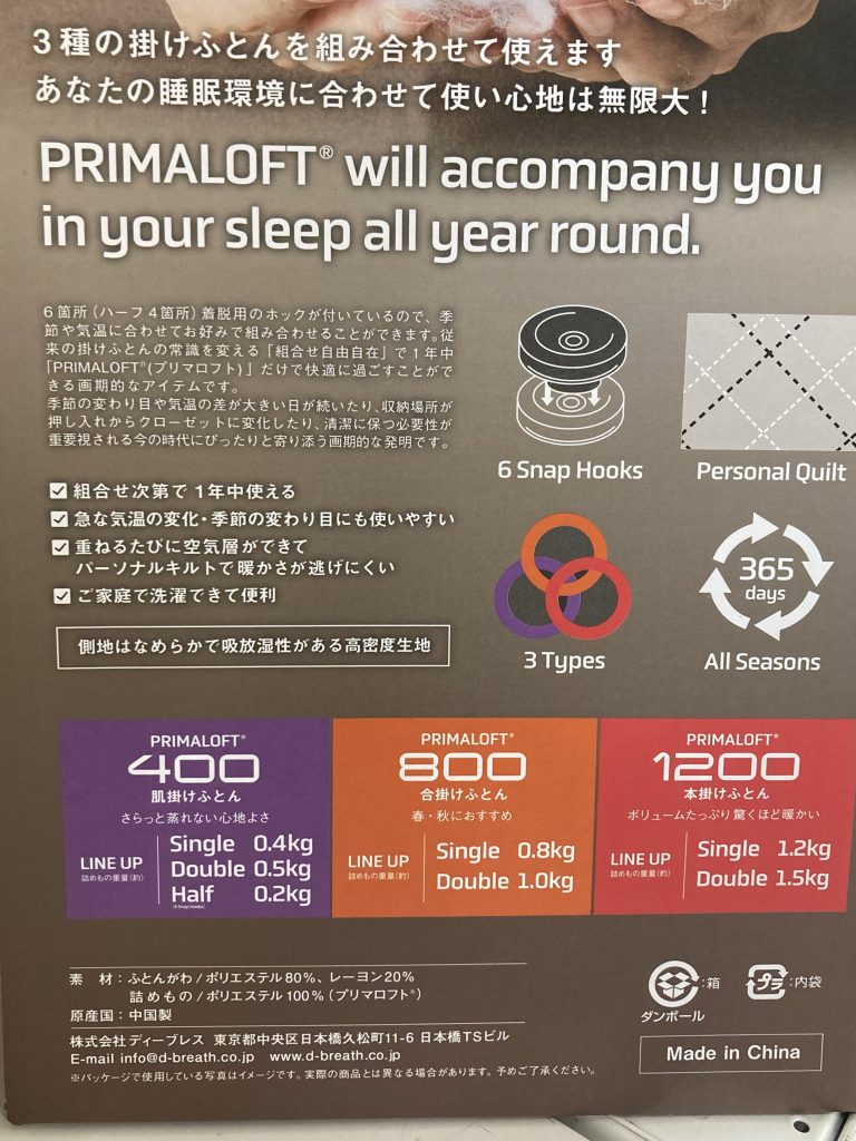 プリマロフトシリーズから新商品『プリマロフト400肌掛けふとん』ご紹介