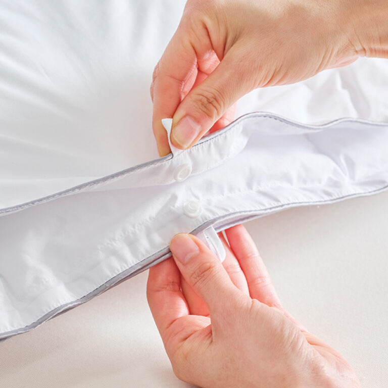 ふとん同士のホック(リバーシブル)を留めてお好みの暖かさに調節できるので年中快適に使える掛けふとん