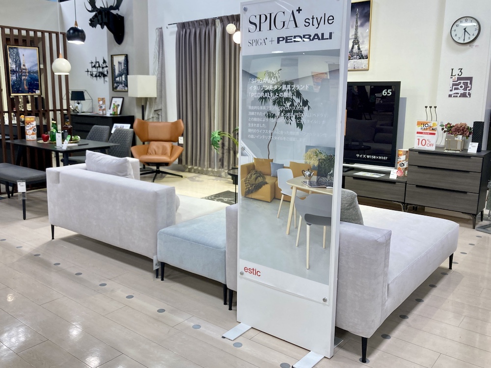 本日はリビング売場から、エスティック社SPIGAの人気ソファ「LIZ(リズ)」のご紹介です。