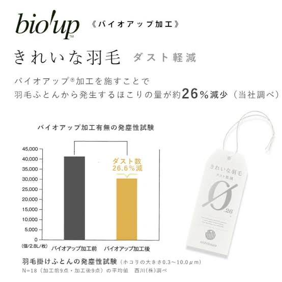 良質なフランス産ホワイトダックのダウン93%、フェザー7%使用。