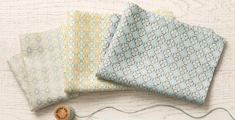 すみれの柄を表情ある糸で織り上げ北欧風の配色で大人カジュアル。