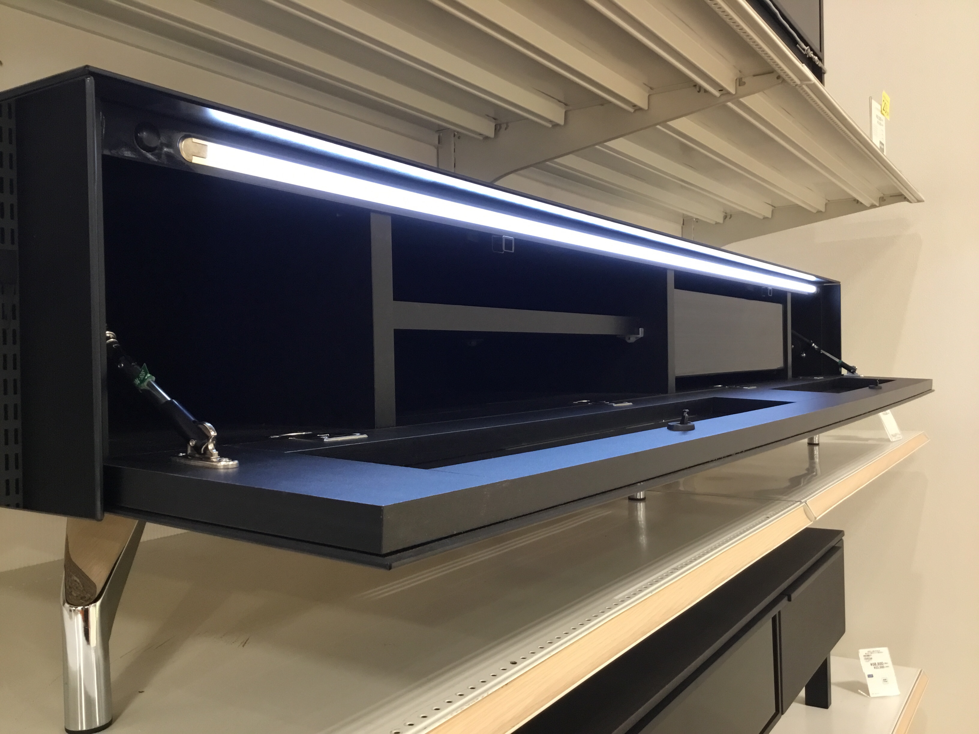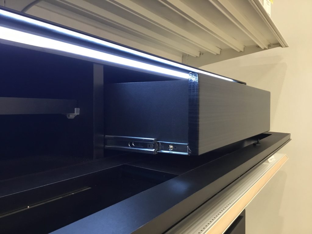 扉を開けると上部にLEDライトがついていて、閉めた状態でも光が良いアクセントになっていてお洒落です。