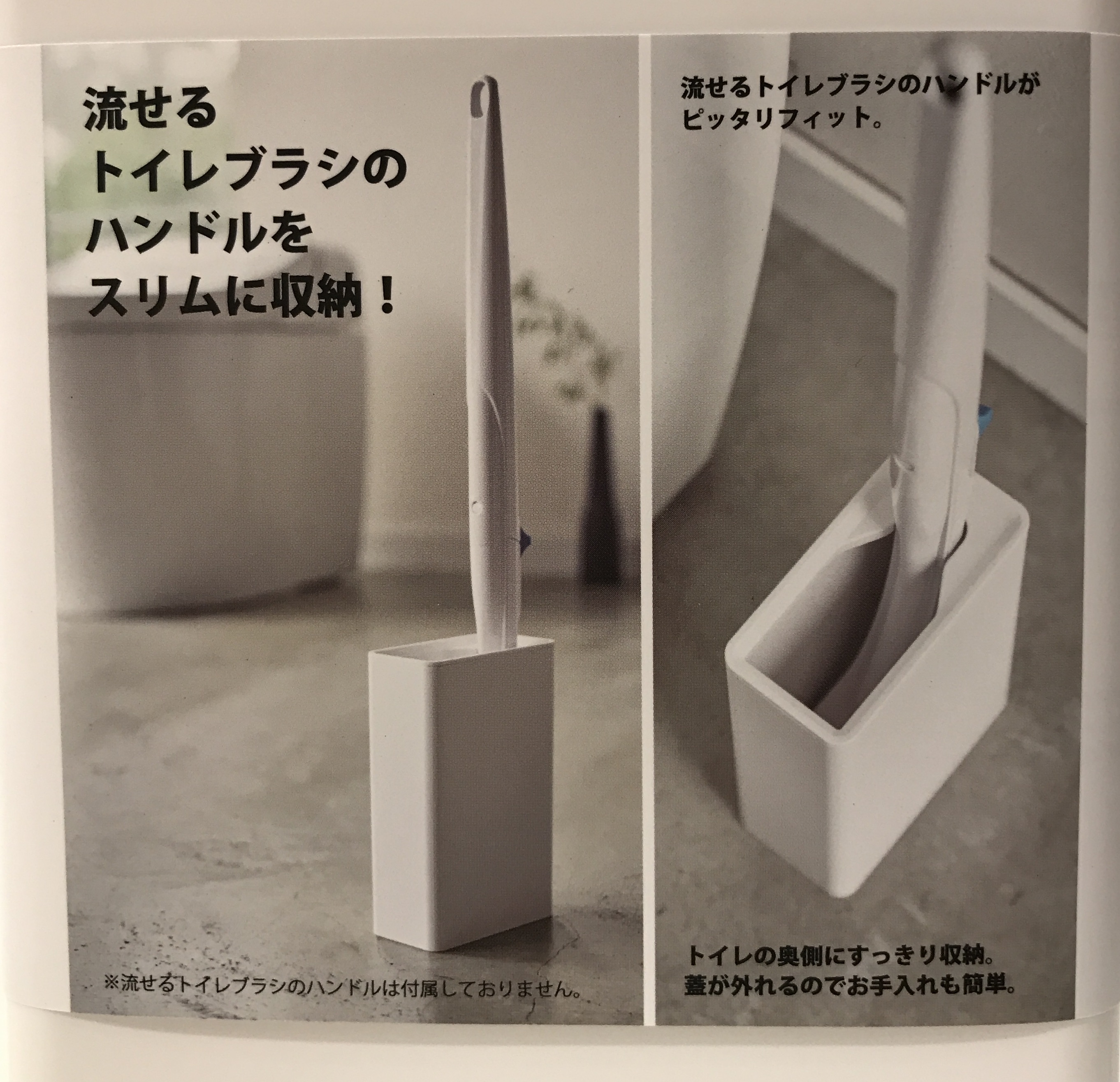 流せるトイレブラシのハンドルをスッキリと収納できる