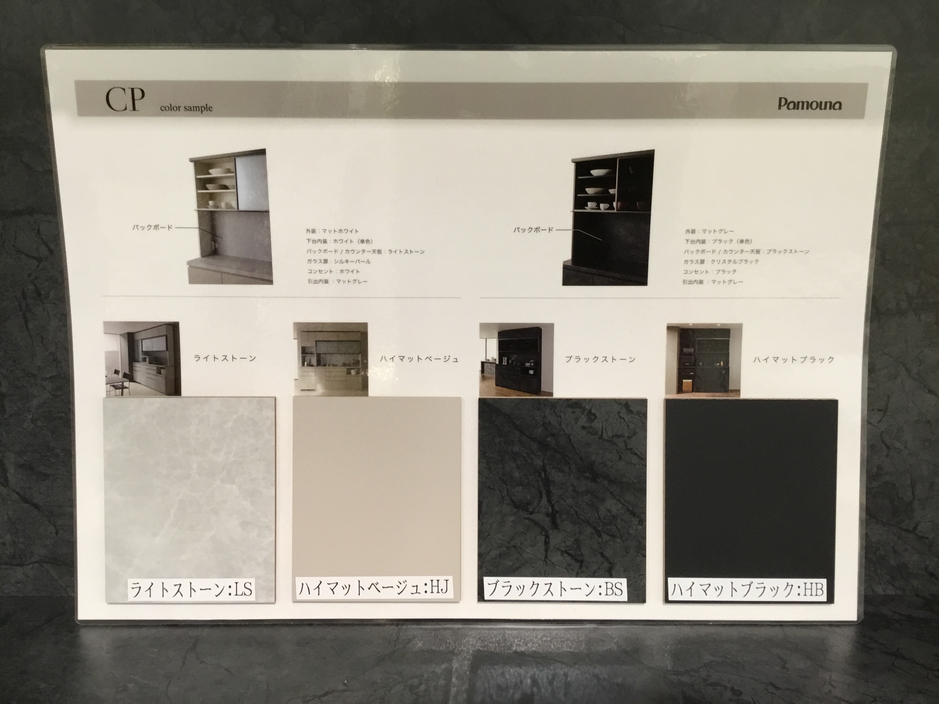展示のハイマットブラックは、ブラックストーンとライトストーンの2色を