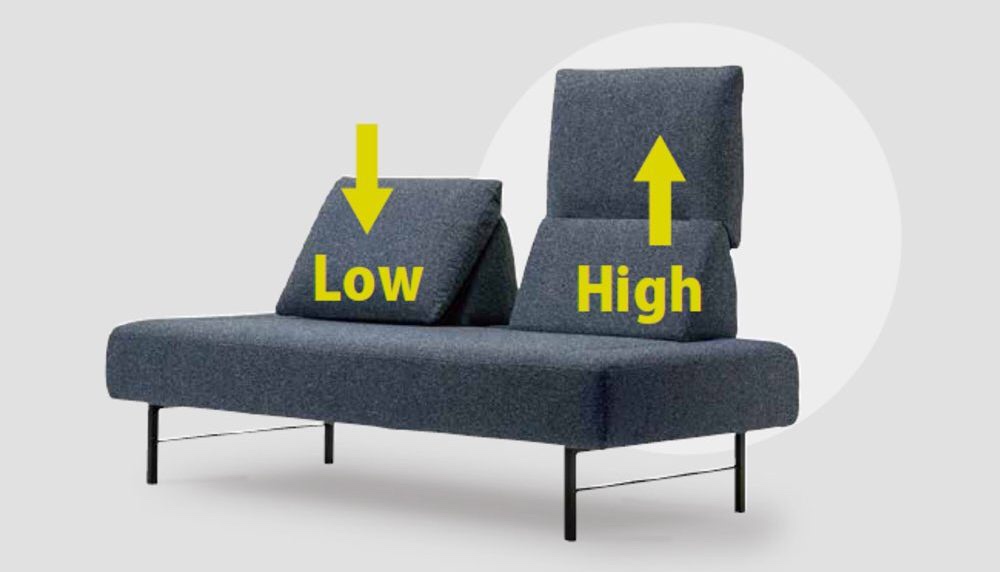 ベースのスリット部分に差し込む背クッションは、ハイタイプ・ロータイプと変えることができます。