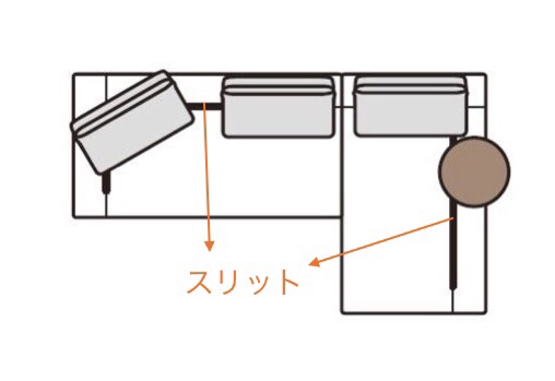 こちらの部分に背クッションやサイドテーブルなどのアイテムを自由に差し込むことができます。