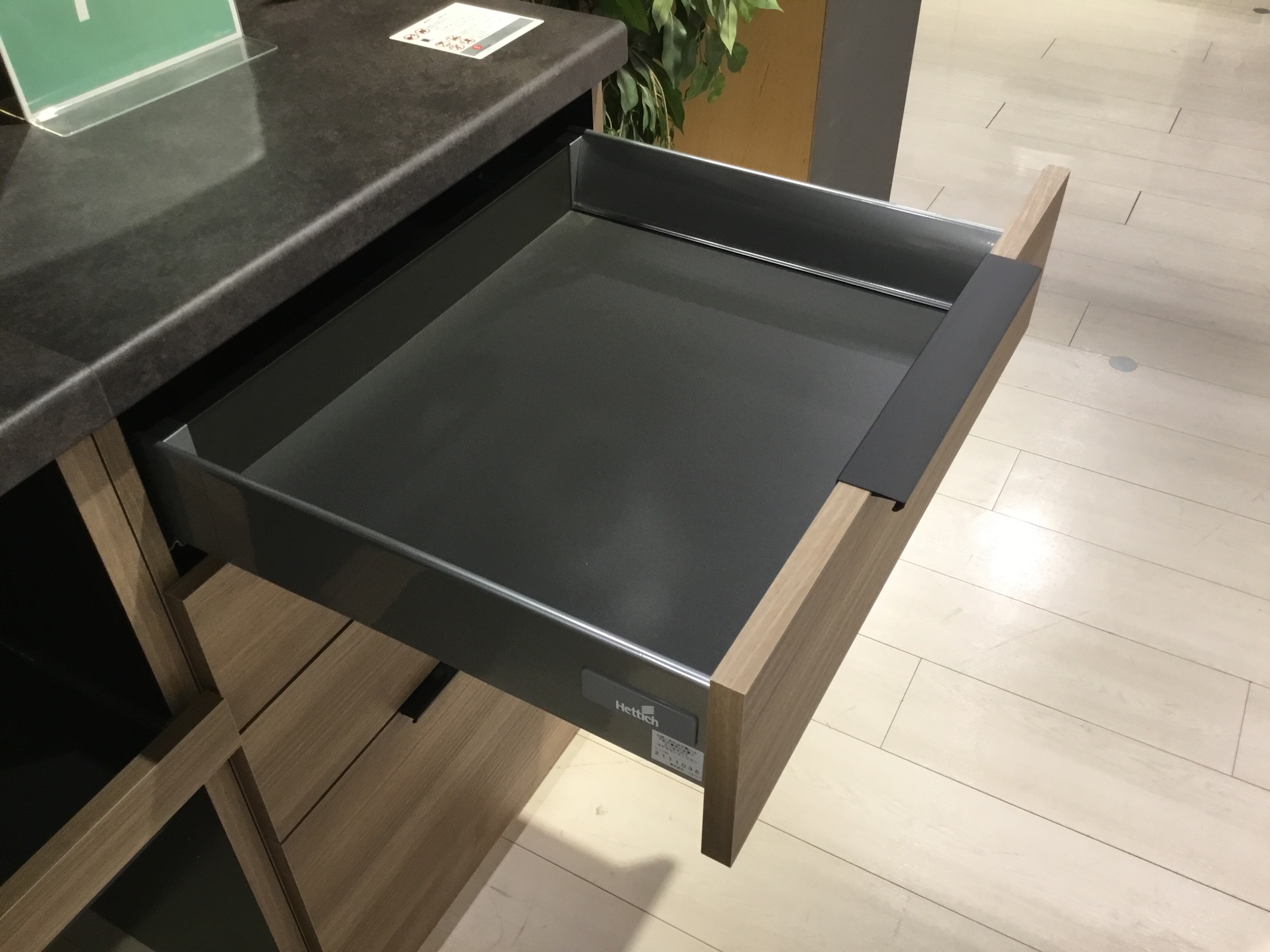 引き出しはゆっくり閉まるソフトクローズ機能付き。