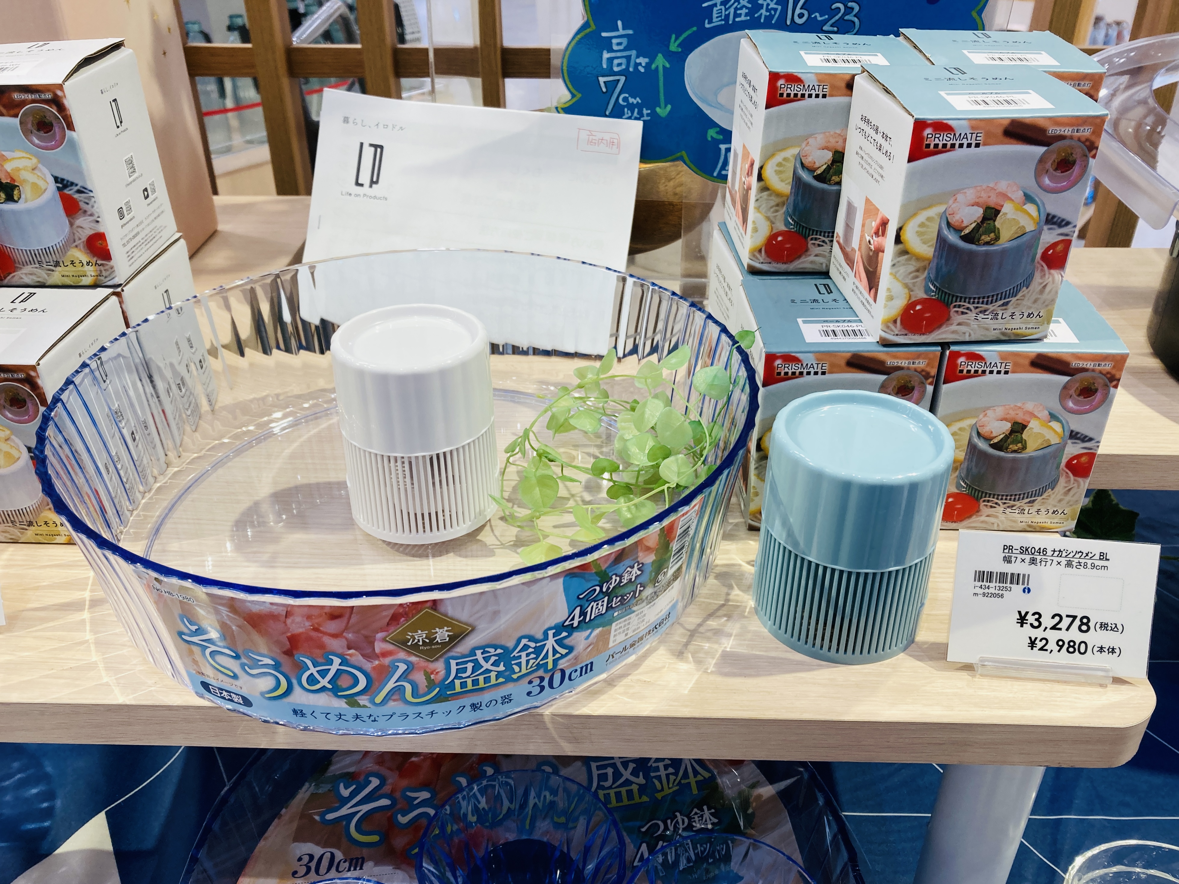 大き目の器があれば、置くだけで簡単手軽に流しそうめんを楽しめます
