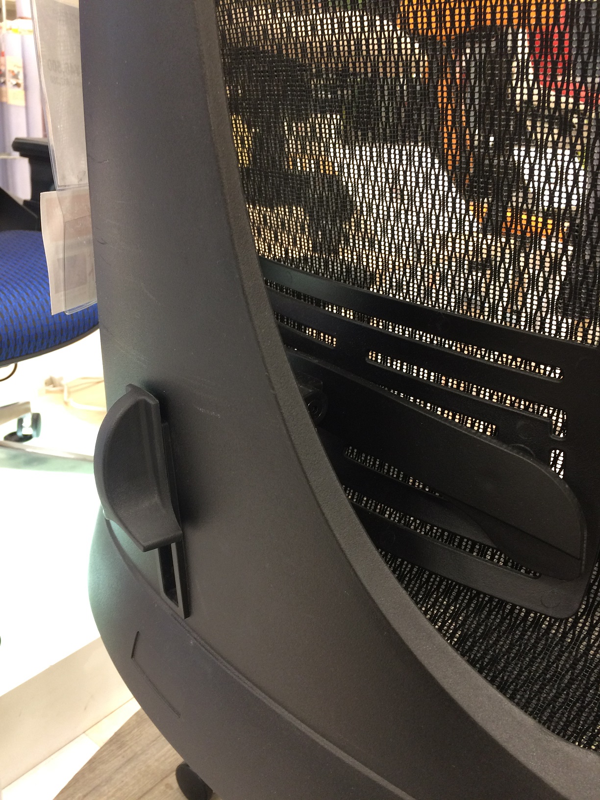 背もたれのツマミで背中にジャストフィットするよう