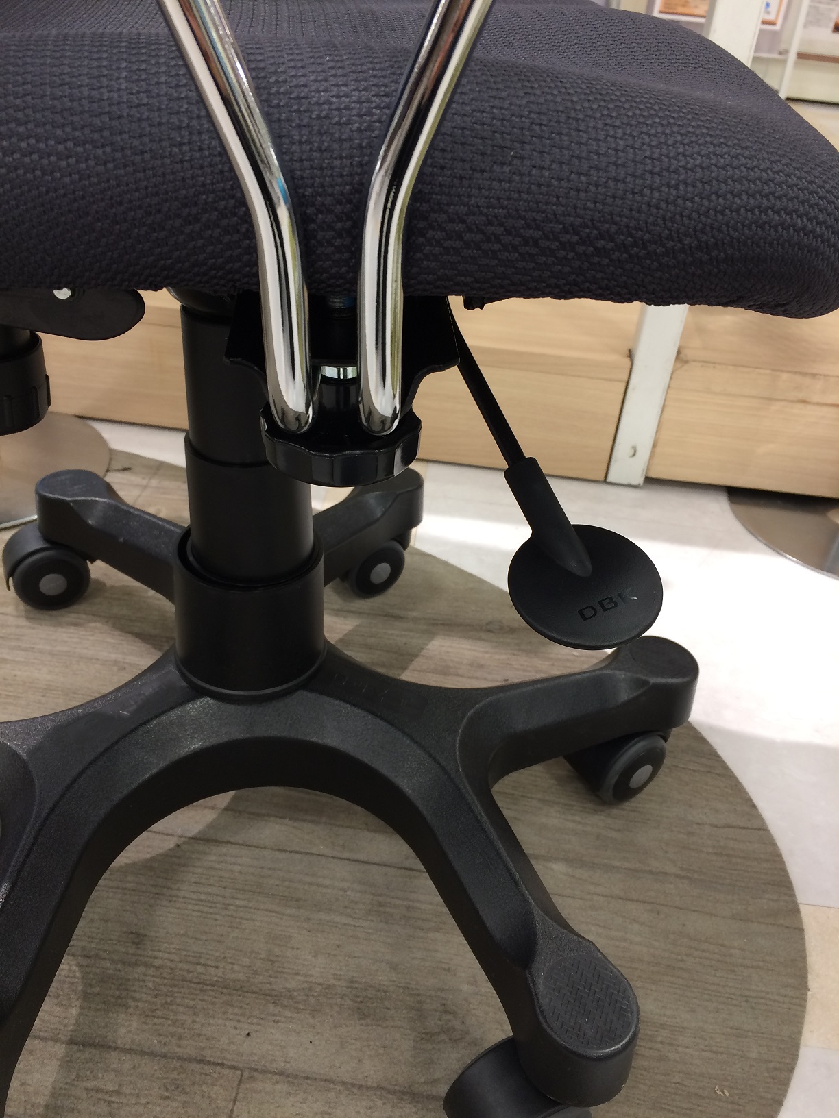 座面下のレバーでロッキングを固定したり、