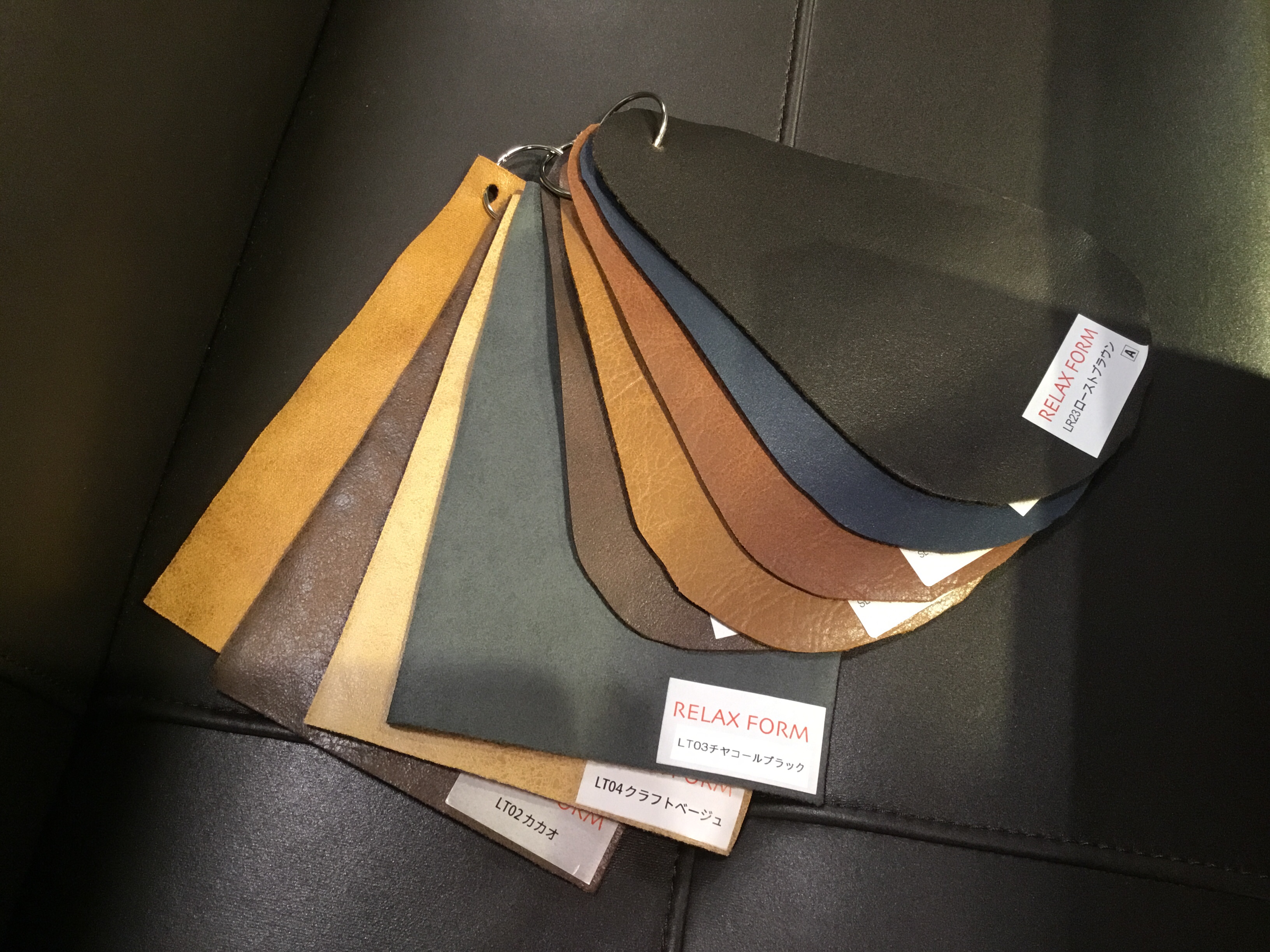 ソファ生地はレザーテックス9カラー。