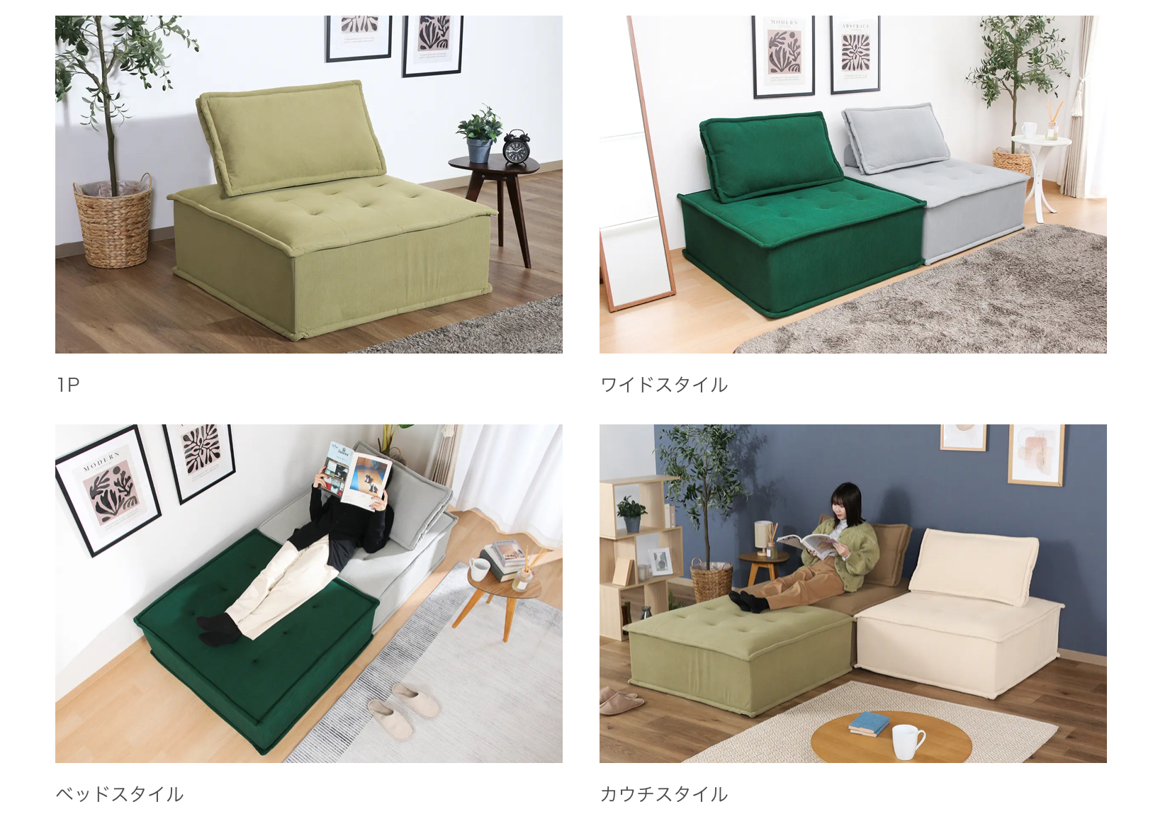 さまざまなレイアウトを楽しめるスクエア型のソファ
