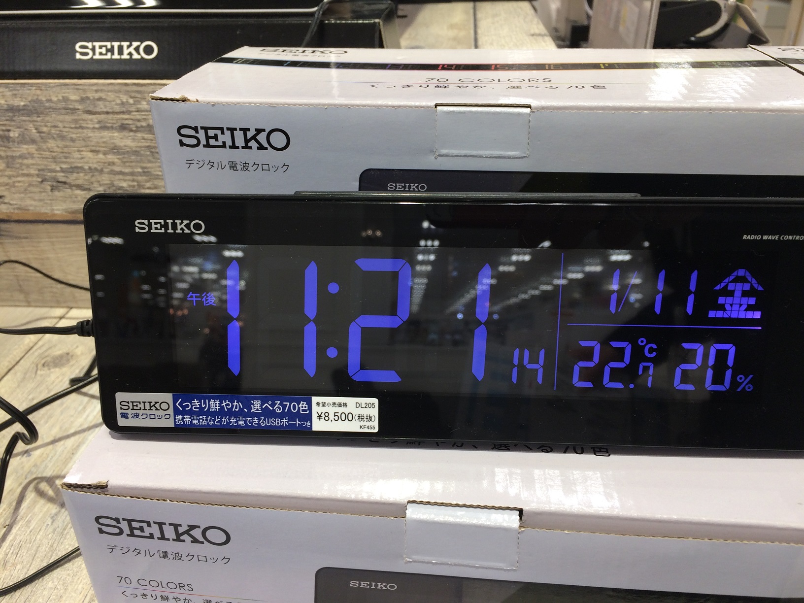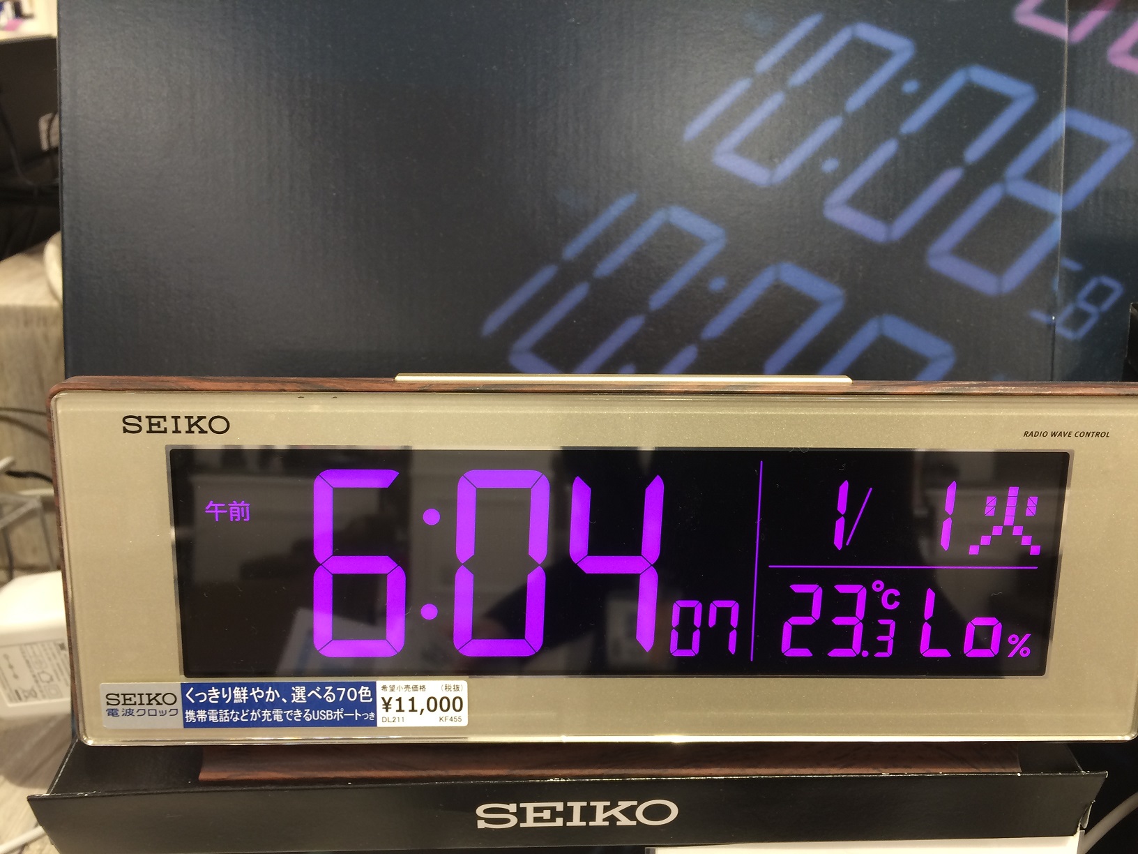 こちらのSEIKOの電波時計は、携帯の充電ができるUSBポート付き!