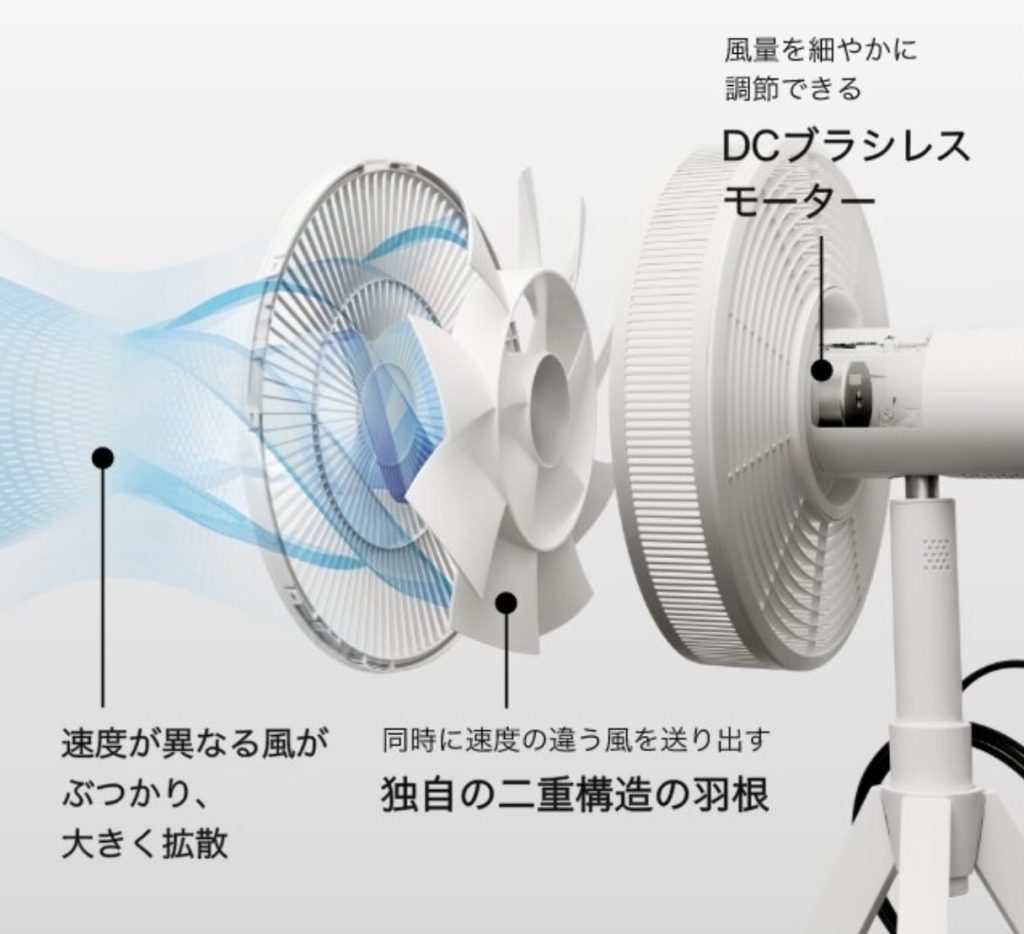 風ムラがないので長時間風を浴びても身体が冷えすぎず