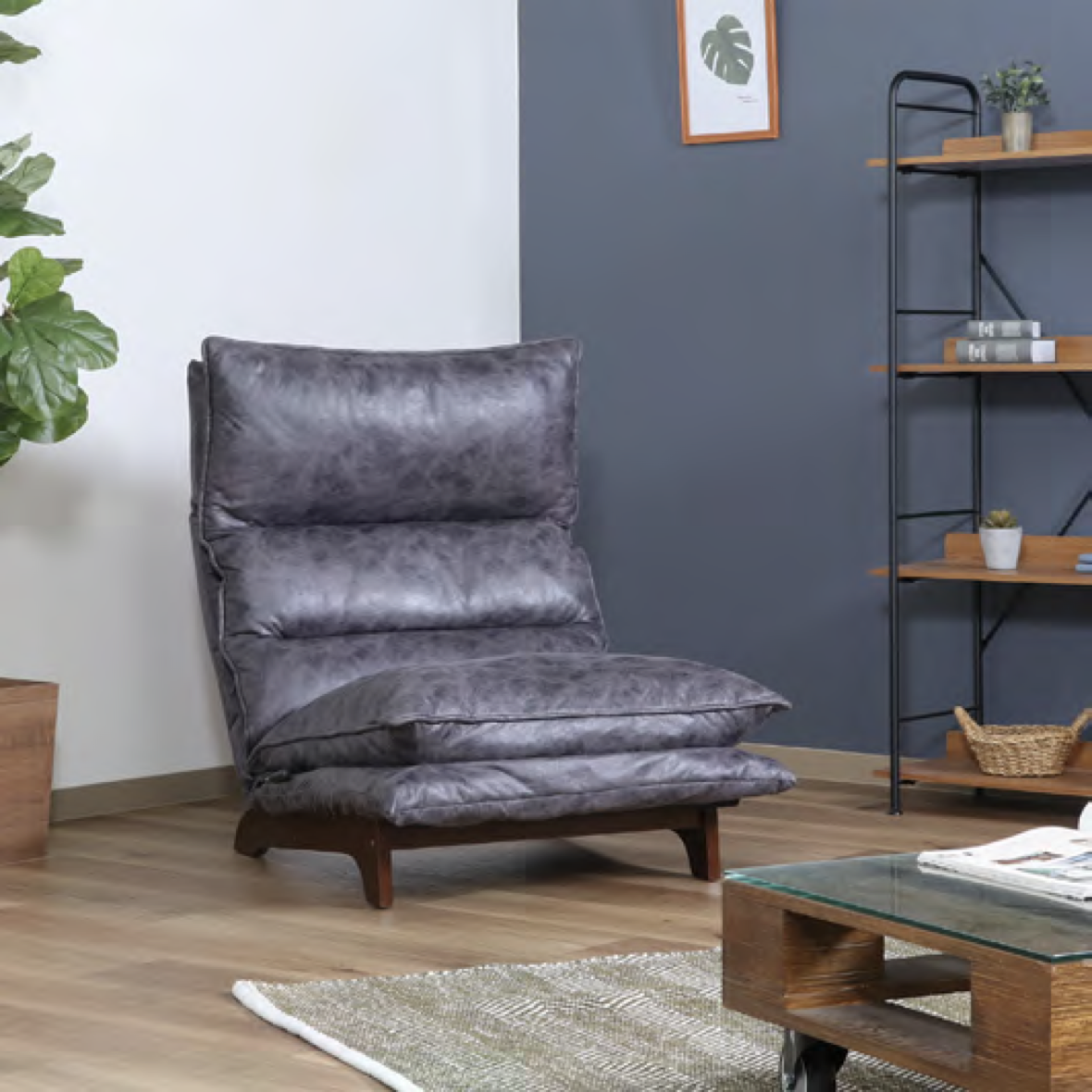 レザー調のファブリック生地が革張りのような肌触りと