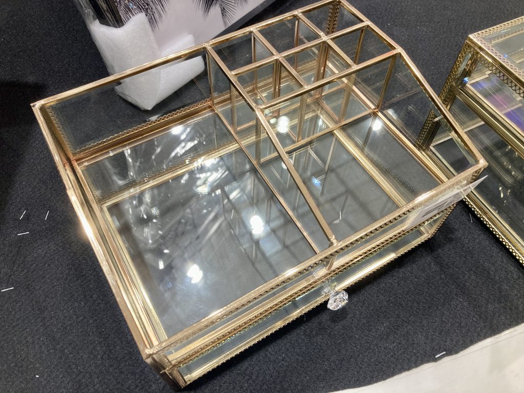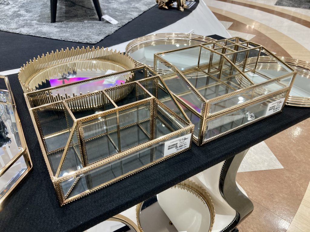 底面がミラーになっているゴールドトレーと、アクセサリーケースです。