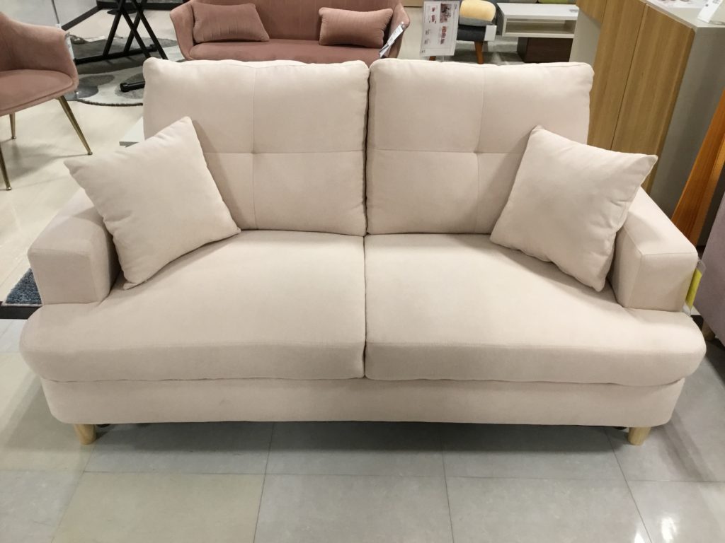 幅161㎝、奥行80㎝のコンパクトなファブリックソファです。