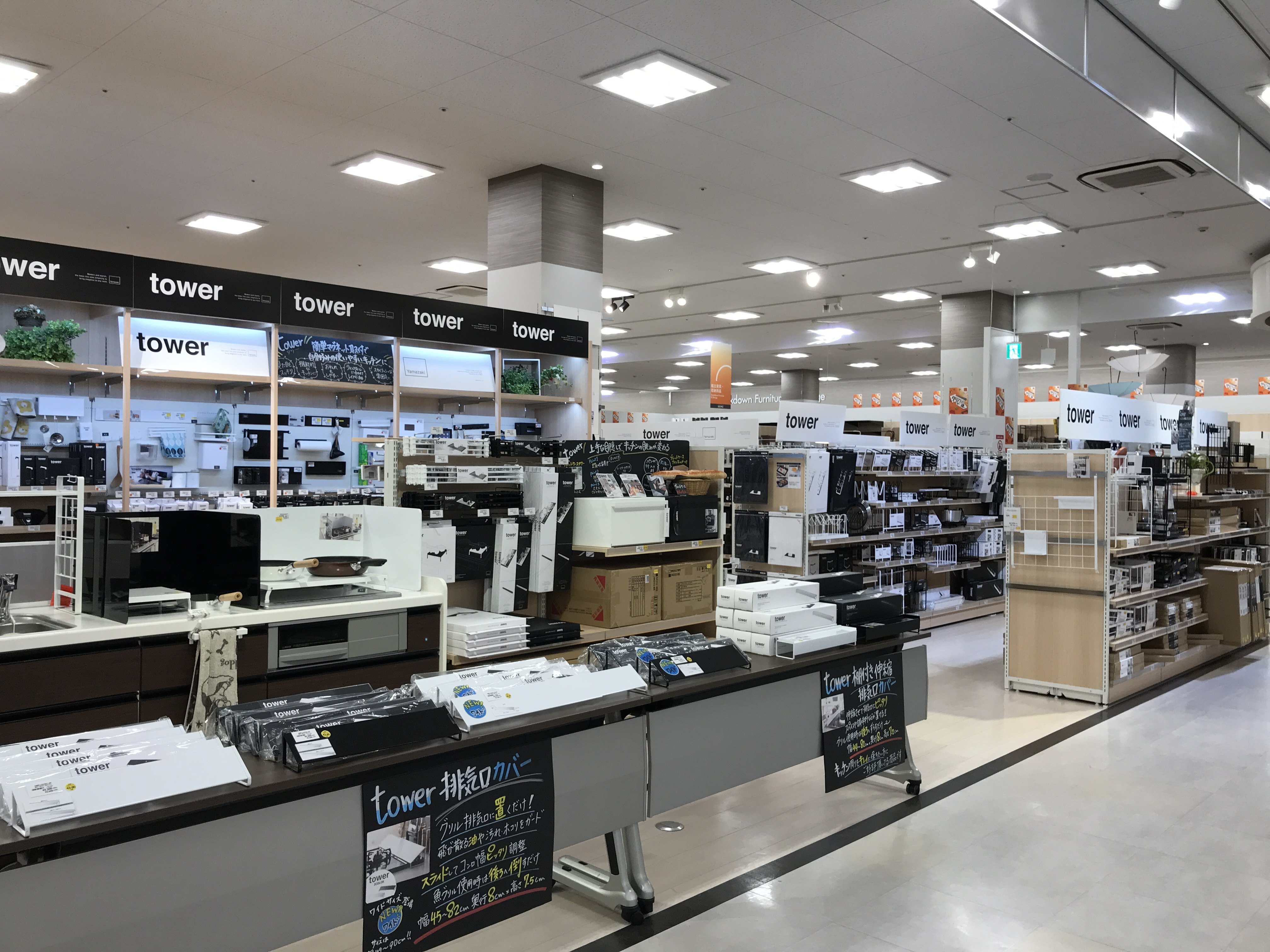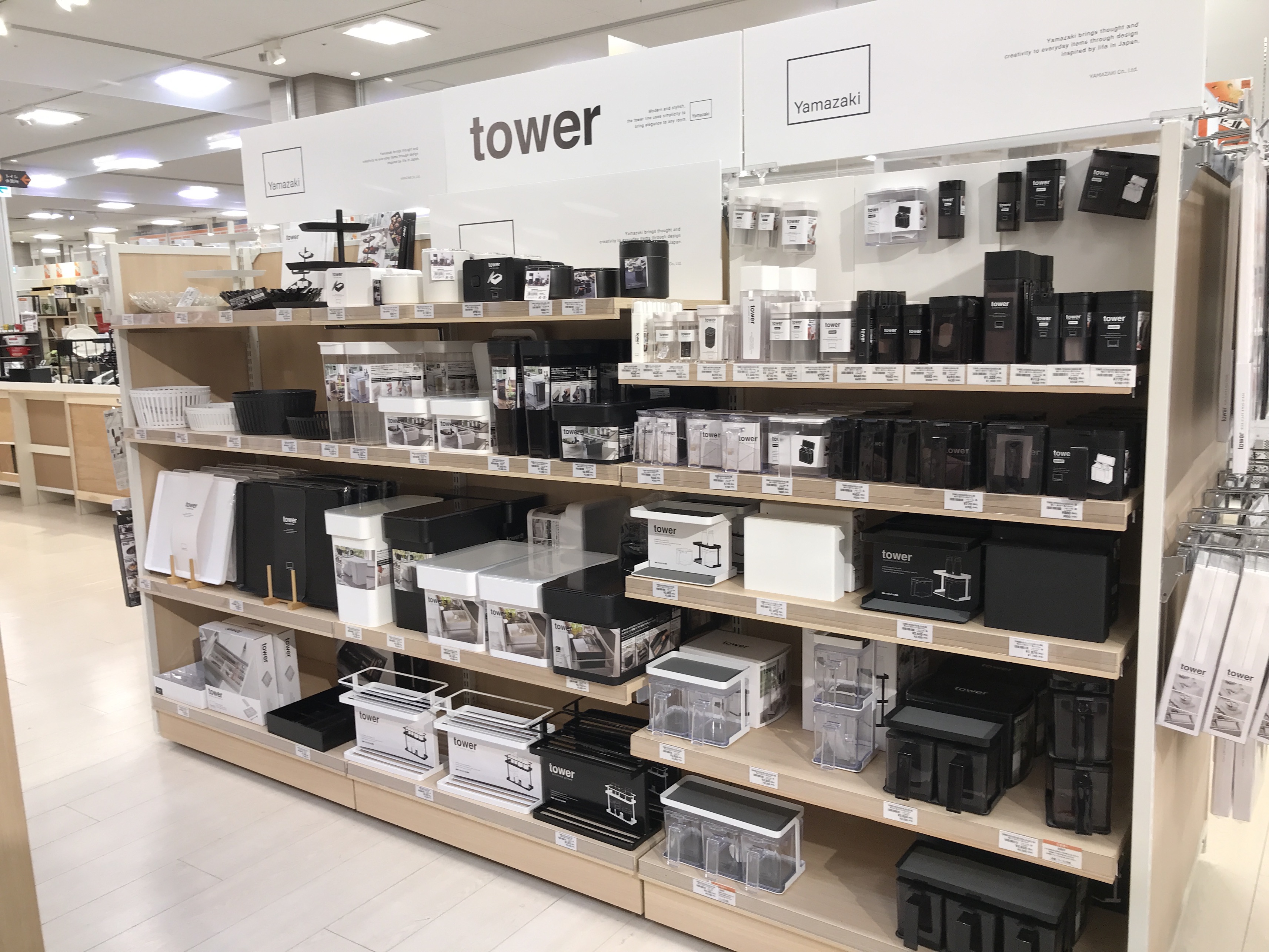 山崎実業の「tower」シリーズの紹介です。ファニチャードーム本店は「tower」シリーズを実際にご覧いただけます。カタログ掲載品の3分の2のものが売場に展示されていて、「tower」展開実店舗としては日本一です。