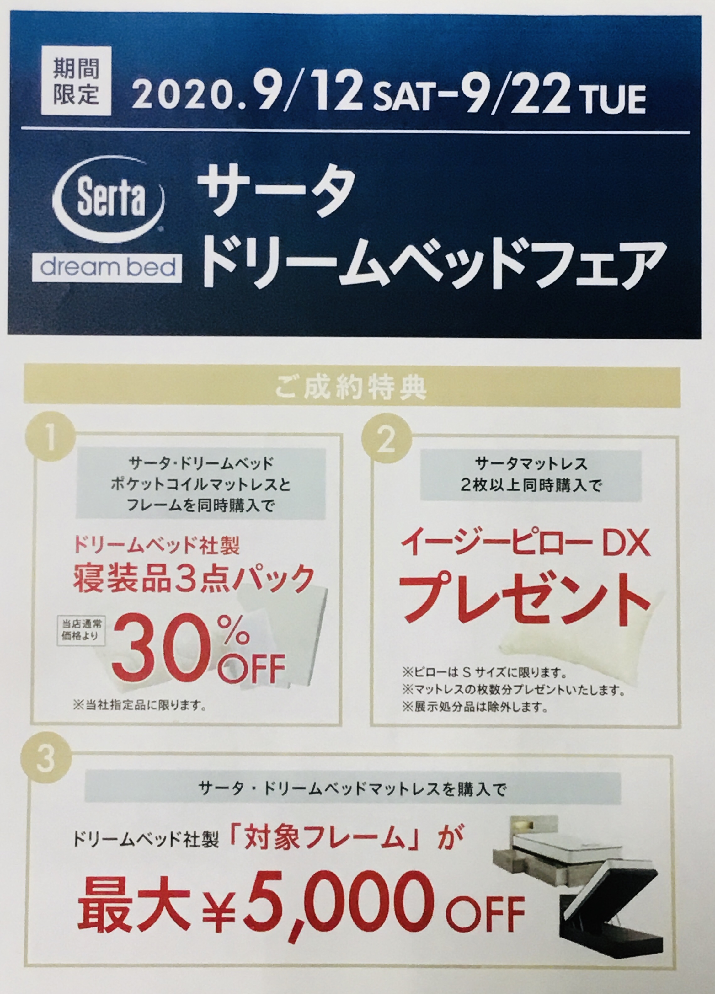 それと同時に、サータ・ドリームベッドフェアも始まりました!!