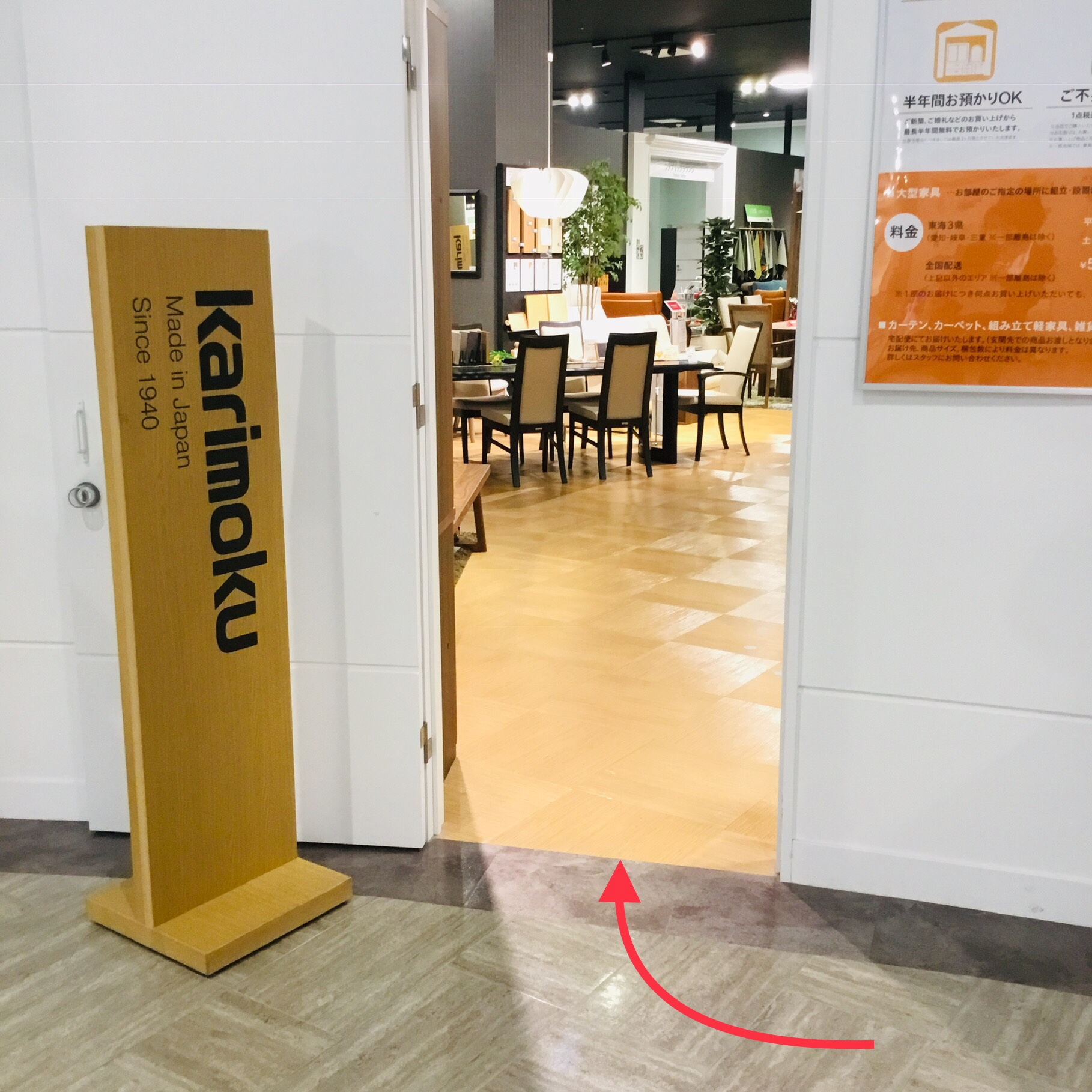 『karimoku』カリモクの看板が見えてきますので、そちらからお入り下さいませ。