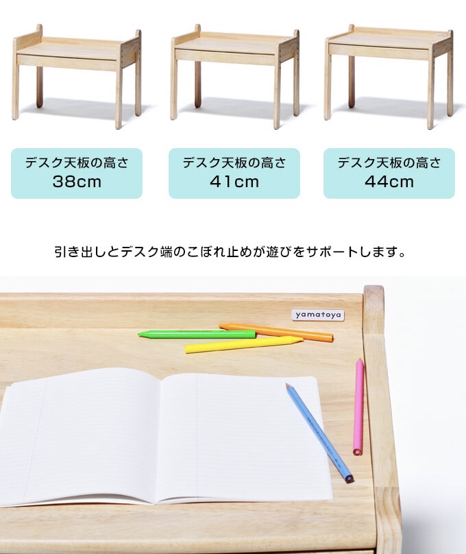 キッズデスクは引出し付きで、お絵かき道具もたっぷり収納できます。
