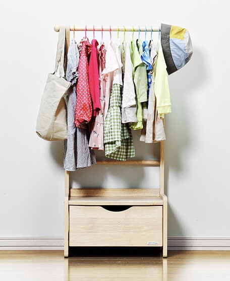 ハンガーラックは子供が自分で掛けられる高さにポールの高さを2段階で調整できます。